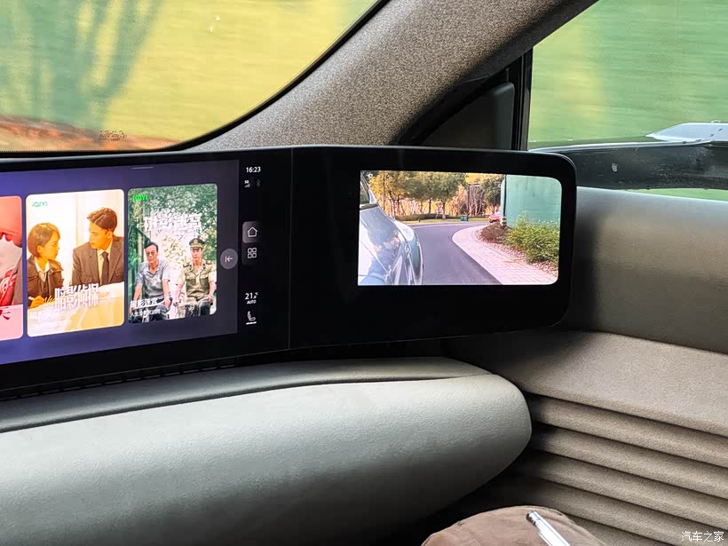 坐进车里,豪华感和科技感一下子就出来了,细节做得也很贴心。59英寸的4K全景屏横跨中控,还带Mini-LED显示技术,白天大太阳底下看得清清楚楚,晚上亮度也柔和,不刺眼,看导航、查信息都很方便。3D立体木纹饰板配着间接氛围灯,摸上去质感不错,灯光转起来也温柔,让冷冰冰的科技感多了点温馨。运动座椅的包裹性和支撑性都很好,隐藏式出风口吹出来的风软软的,再加上香氛系统,关上车门就听不到外面的车流声了,堵车的时候待在车里还挺舒服的。