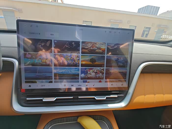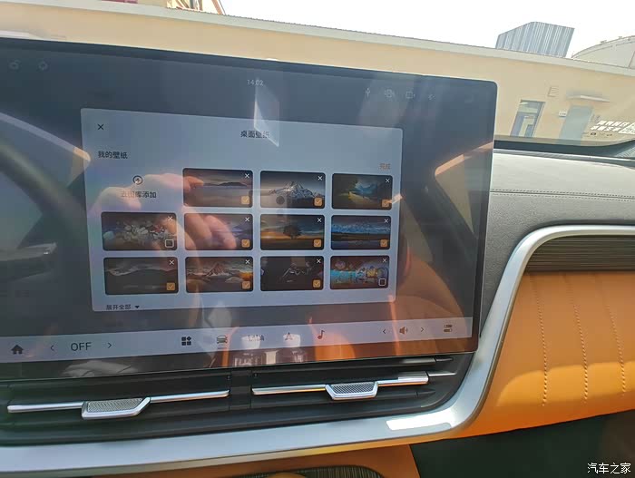 路径:点击车机主界面右上角“车辆设置” → “显示” → “壁纸” → “去图库添加” 。