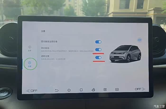2.多功能键盘或者屏幕左下角汽车的图标-点击Dipilot-点击泊车辅助-全景影像-设置