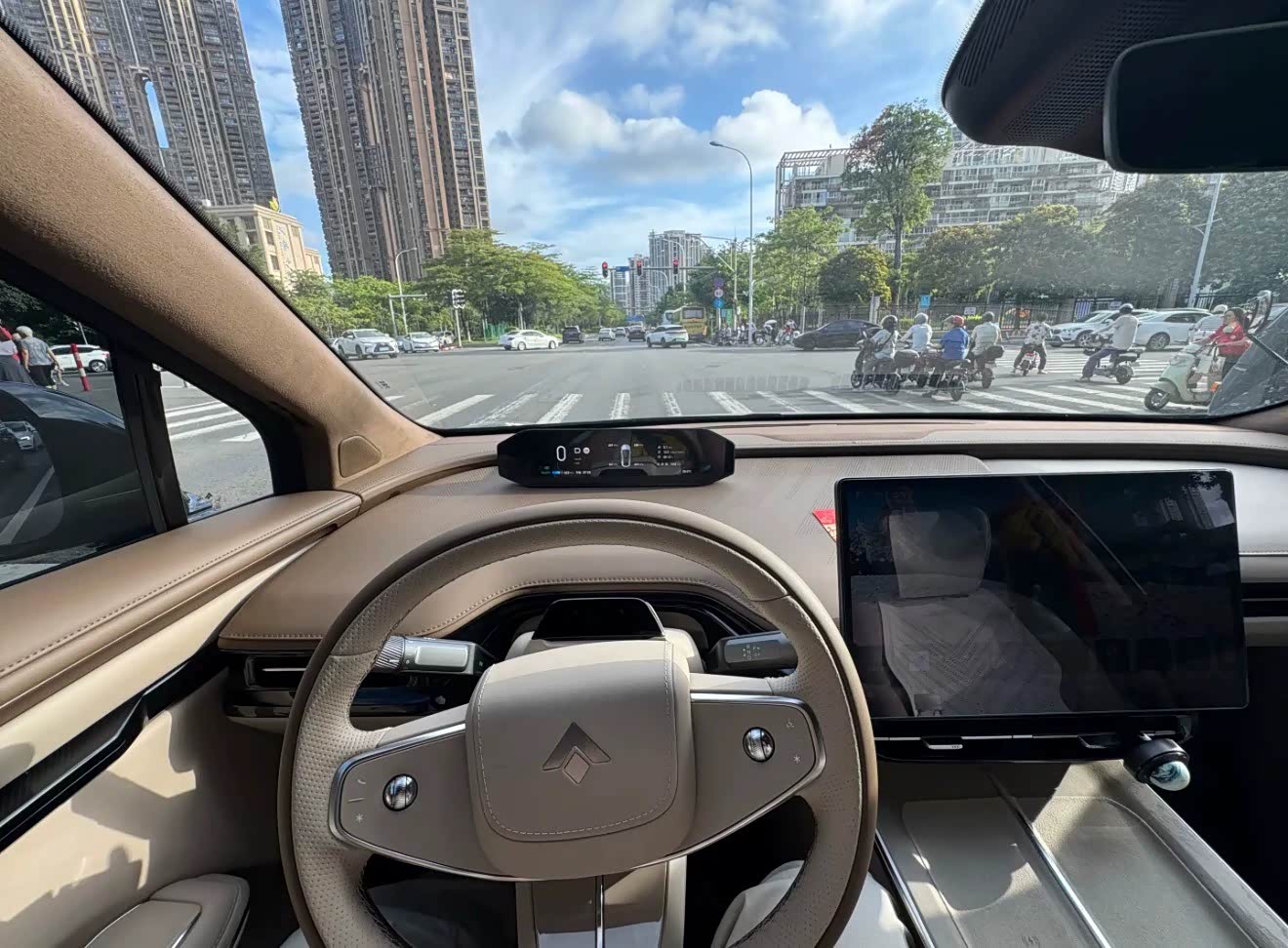 我的车是昊铂HT670续航版的官方标称续航?:672km(CLTC),城市实测续航?:实际续航580km(达成率90%以上)拥堵+空调场景:电耗14-18kWh/100km,满电可跑524km到650km,城市续航可以打92折在高速续航?120km/h时速:电耗18-22kWh/100km,实测连续行驶500-560km,对于一台两点几吨的中大型SUV电车来说,这样的电耗我是挺满意的。习惯性的打开动态续航,家用充电桩充满后,表显续航539km,实际城区达成率80%,