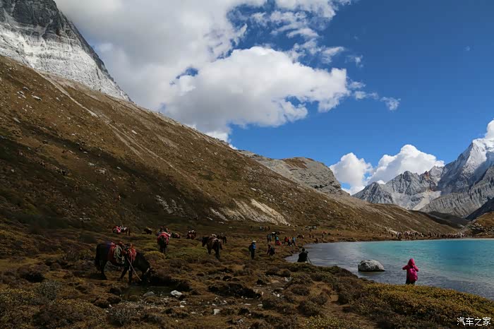 4日晚住宿亚丁景区外,门票网上几天前定的160/人,景区内大交通120/人,电瓶车80/人,必须要坐滴,最好坐上马匹(景区价格),到牛奶海来回300/人,3个多小时。牛奶海有藏民马匹转山一圈4个小时价格400——700/人不等。