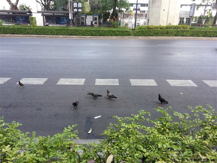 泰国不愧是一个和谐的国家,鸽子在马路上随便的吃东西,不惧拍任何人类!