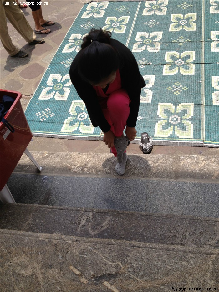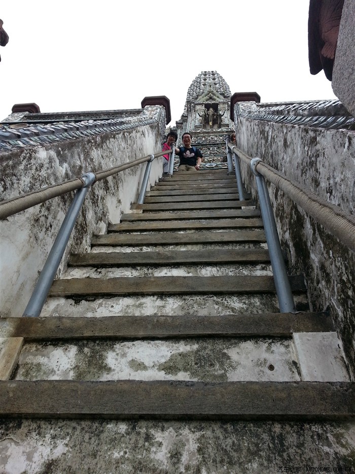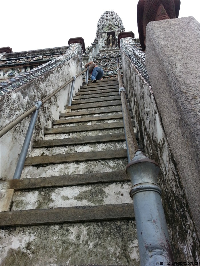 第一层的台阶还行,女生还能上去!到了第二层,那就真的别想上去了。连我们穿了运动鞋的男人,都是拉着栏杆,运用腰部力量上去的~