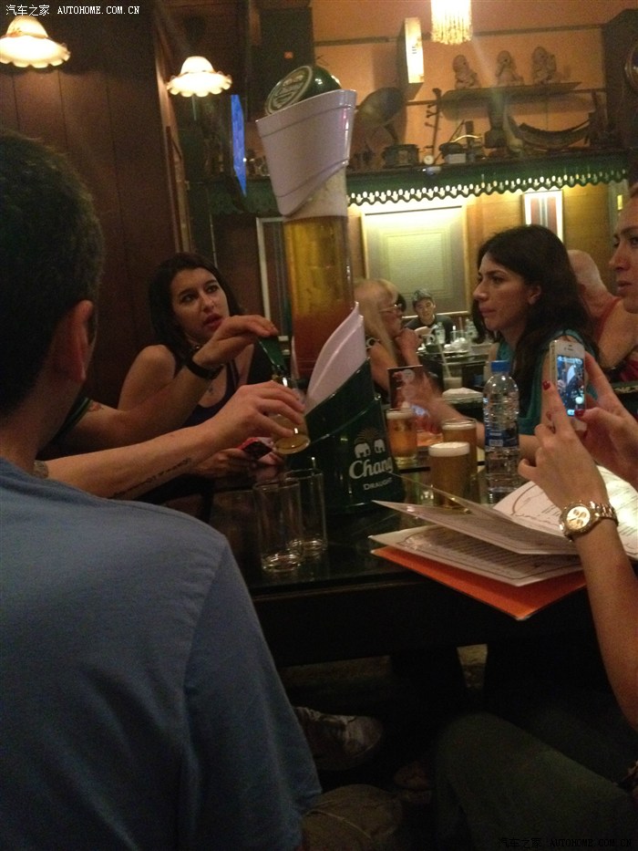 马杀鸡也完了,看看周围越来越热闹了,原来夜生活才刚刚开始。都来了,怎么能不happy一下呢。我们挑选了一家最热闹的酒吧,点了一打啤酒;给女生点了2杯果汁,开喝!