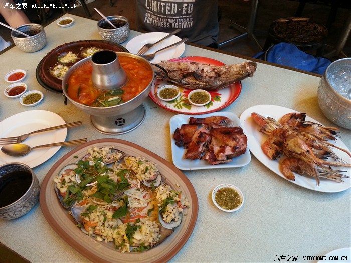 点了扇贝、鸡、虾(味道一般般,普吉的好)、冬阴功(不正宗,避孕套餐厅的正宗)