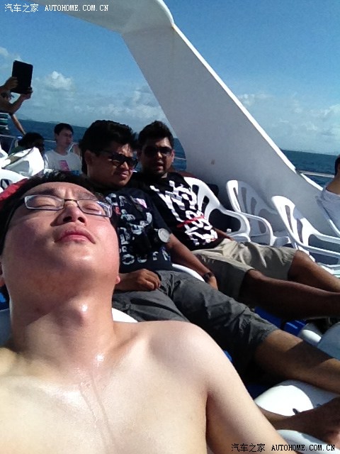 整条船有很明显的分布,国人全部都不坐在2层,穿了厚厚的长袖,一遍遍的擦防晒霜。所以大家都说,走在海滩上,撑着伞的一定是中国屌丝!为了逆袭,我决定跟欧美人学习一把,去甲板上享受日光浴