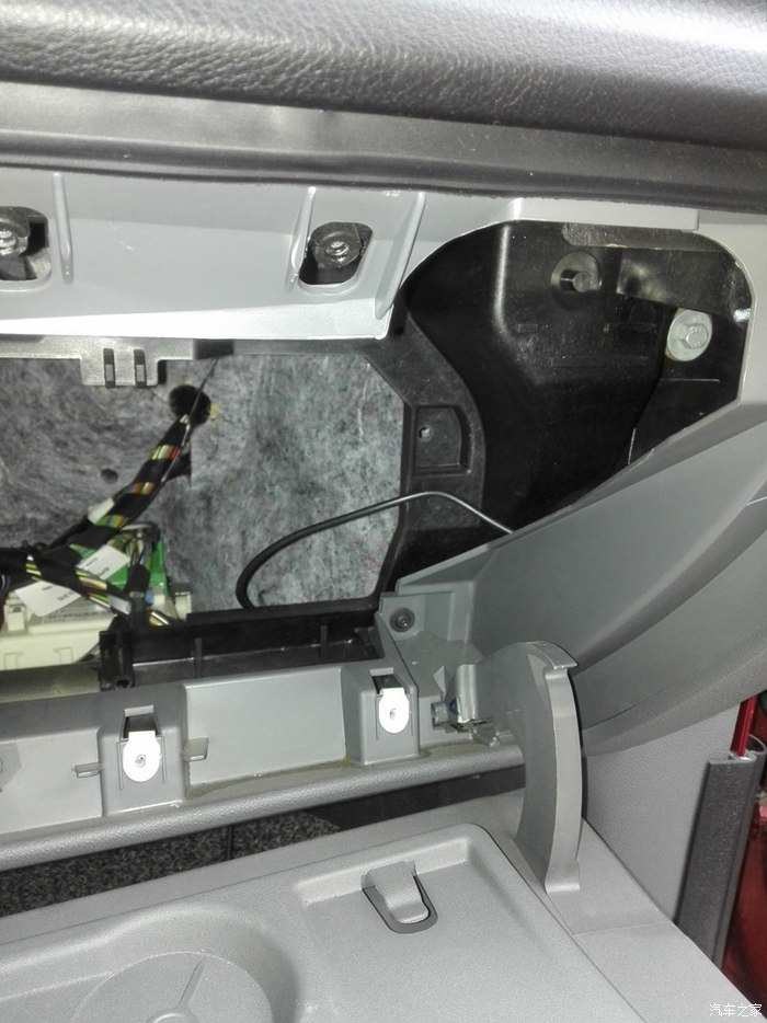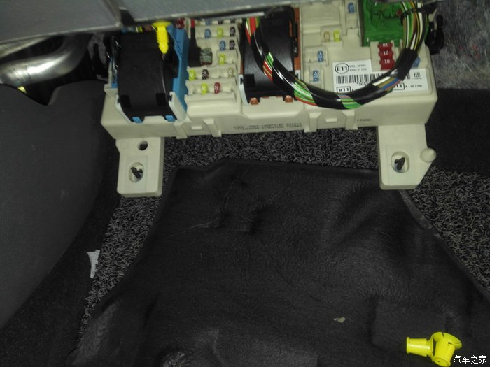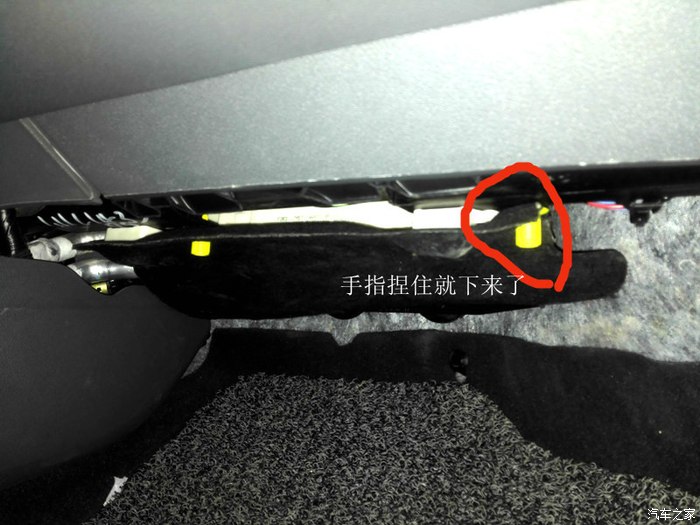 4.2拆保险盒 手套箱下面两个黄色的紧固件,稍微捏住就下来了,然后就可以拿出保险盒