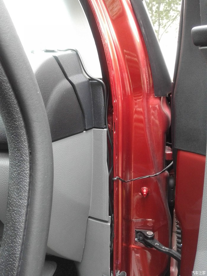 从右边出来沿着边框塞进去 就可以了吧线引导门框上面 然后通过A柱,到前
