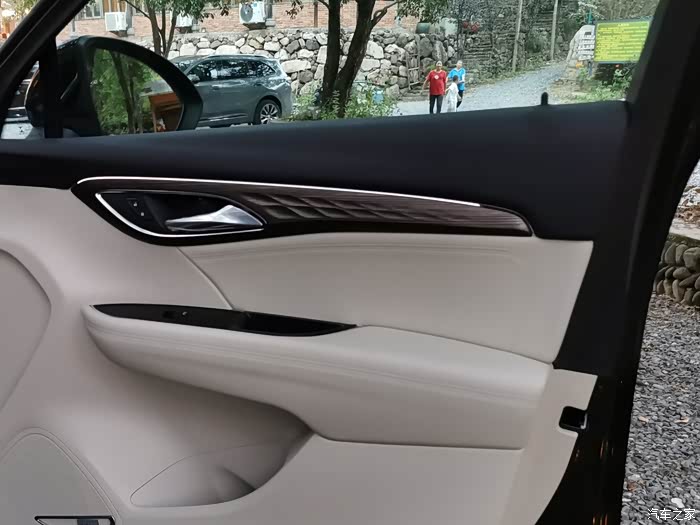 车门上面的木质饰板一定程度上体现了昂科威Plus设计的水准,因为木头这东西的造型和色彩并不好把握,玩不好得话非常容易导致土气或者老气,而很显然,昂科威Plus的设计师是把木头的豪华和优雅气质给营造出来了。