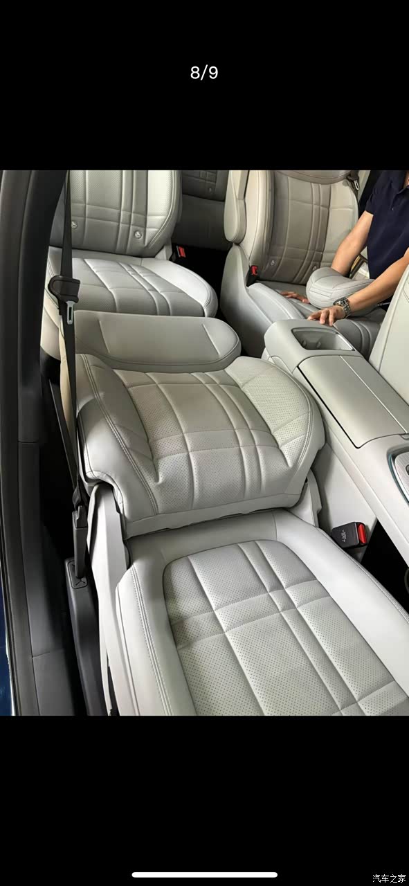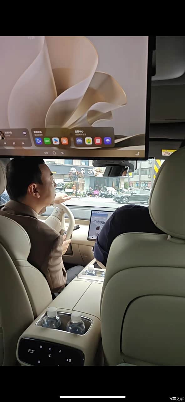 打开车门就能看到移动中岛。通过屏幕控制,中央岛台可在前后排间自由滑动。还是挺新奇的。整个车子的空间还是非常大的,1.8米身高的在第三排的空间还算不错,并不觉得挤,还是非常好的。
