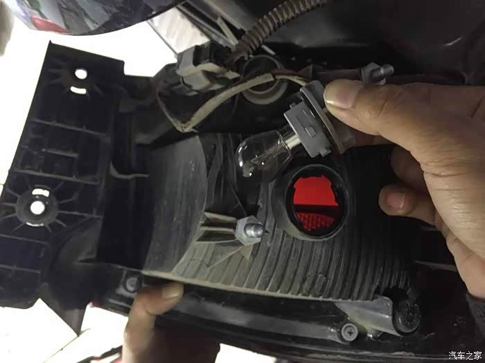 自己动手拆小六子尾灯,更换灯泡工具介绍:一字螺丝刀,棘轮扳手,10mm扳手套头(尾灯固定螺丝是10mm的)小六子外侧尾灯只有两颗螺丝固定,在红圈内的盖子下面我拆的右面灯,拆前忘拍照片了,用左侧灯照片吧,一样的用一字螺丝刀从下面撬开盖子,要从下面撬,上面有卡角撬下来的盖子,看到上面的卡脚了吧,所以要从下面撬看到螺丝了卸下两颗螺丝往后面拉,尾灯的总成就下来了红色为刹车灯座,黄色是总电源线插头,蓝色是转向灯座拔下电源线插头就可以把总成取下来,逆时针旋转灯座,就能去下灯座,换上新灯泡逆时针旋转灯座,就能去下灯座,换上新灯泡转向灯座也是逆时针旋转,就能取下来,不过总电源插头有点挡,可以把总电源插头拔掉再...