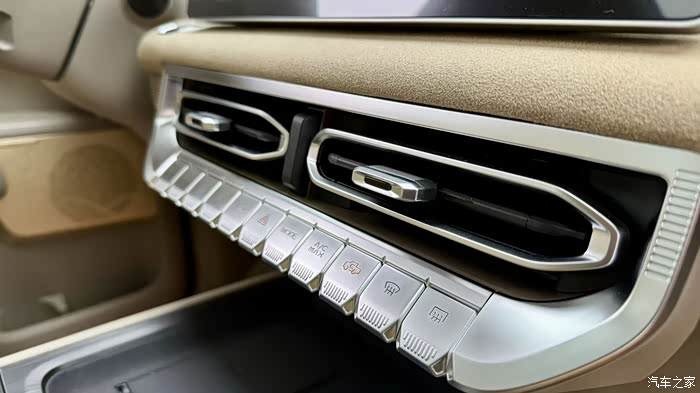 内饰更是一绝,若不是清楚这是一辆纯油皮卡,我还以为坐进了一辆国产新能源SUV的车内,一点合资品牌的老气感、塑料感都没有。经典的中控大屏外加小仪表屏的设计,布局简单耐看。中央出风口下方还保留了一排常用功能的实体按键,保证了实用性和便捷度。