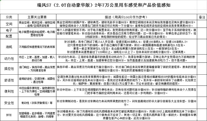 下面针对2年7万公里的用车报告,我专门设计一个表格!