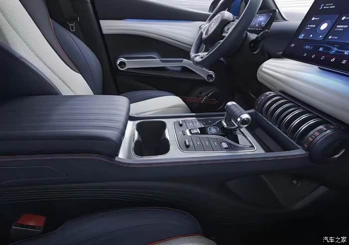 内饰,采用类似于海豚的设计风格,由日蚀蓝、皓月白、朱雀红三色搭配,更显年轻气氛。大量的软性材质包裹,提升整体内饰的豪华质感。全液晶仪表盘,搭配带有旋转功能的中控大屏,营造出很强的科技感。全新的换挡逻辑搭配大量的物理按键,带来不错的驾驶乐趣。