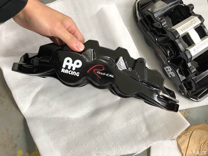 改刹车最主要的还是换了19寸的轮毂以后,里面空荡荡的不好看,于是开始了漫漫选刹车之路,期间也了解了不少行情,首先改刹车千万不要图便宜,什么拆车件,基本都是假的,陈田做旧的,就算是真的拆车件,大多也是洋垃圾,翻新一下,其中的金属疲劳你更本不会懂,刹车卡钳也是有寿命的,长期在高温下工作,金属会产生疲劳,产品形变,所以最不推荐的就是二手件。其次是台产刹车,相对来说性价比高,原装1/3的价格就能买到,运气好没有抖动,刹车也能用,毕竟台产做工也还可以,不暴力驾驶和原厂差不多。最后就是各类改装大牌的刹车,价格从1万到几万都有,本身预算也有限,最终决定选择原装AP8520套装,380盘,没有选红色,一个是车上本身没什么红色装饰,另外我本来就不太喜欢红色,所以就选了黑色款,刹车