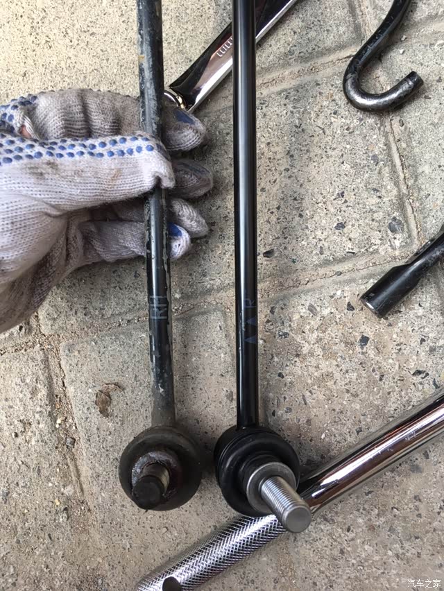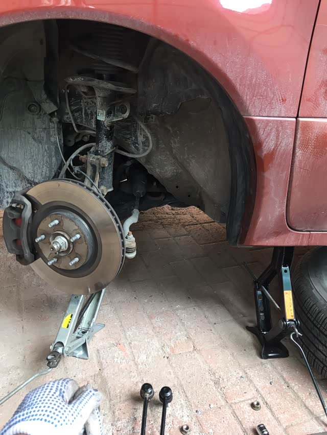 换这个技术含量不高,不过需要体力~外面二级修车厂工时费是150一个,我换了一对,省了300块买鸡腿儿补补~对了吊杆买的是日产原装的,260一对包邮。