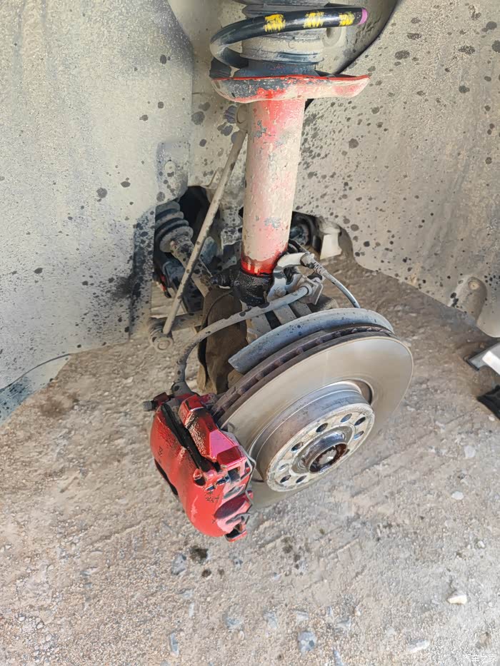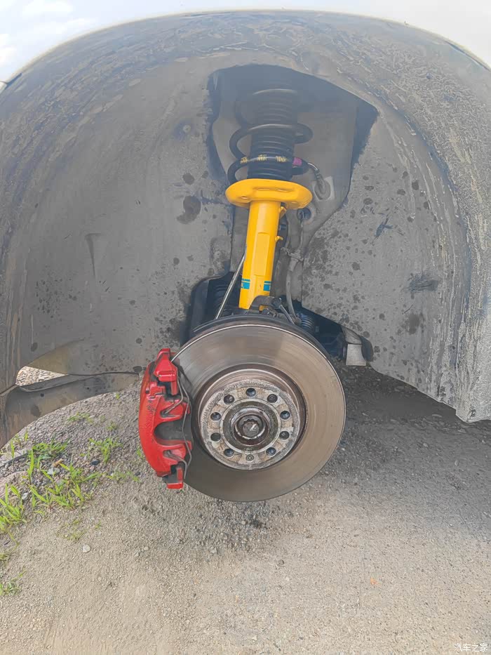 之前已改刹车盘前+分泵等(前312后286)。前减震器是原车萨克斯的,已经自喷漆红色。后减震器是淘宝买的,衰减很严重。