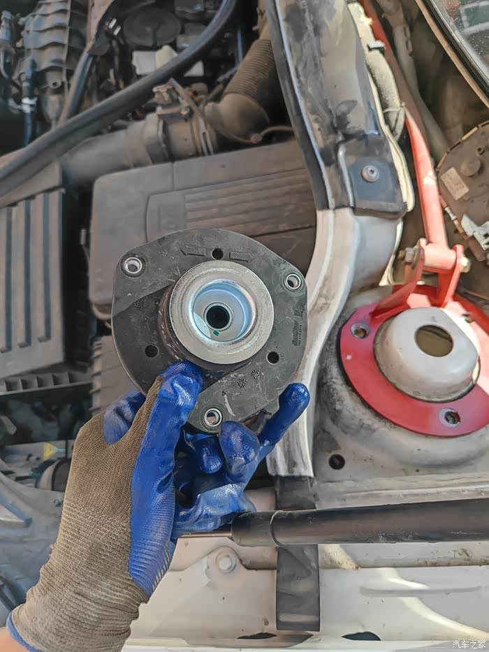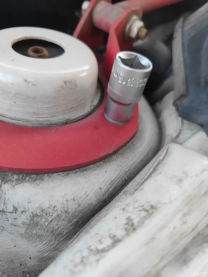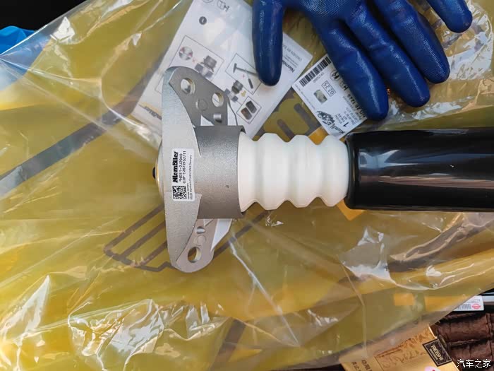 实施阶段:因后减震器的工具材料先到齐了,就先进行安装,后续工具材料陆续到达完毕再开始拆装前减震器。安装顺序:1左后减震器+顶胶+防尘套、2右后减震器+顶胶+防尘套、3右前减震器+顶胶+压力轴承+防尘套(倒插式不能安装缓冲块)、4左前减震器+顶胶+压力轴承+防尘套(倒插式不能安装缓冲块)。