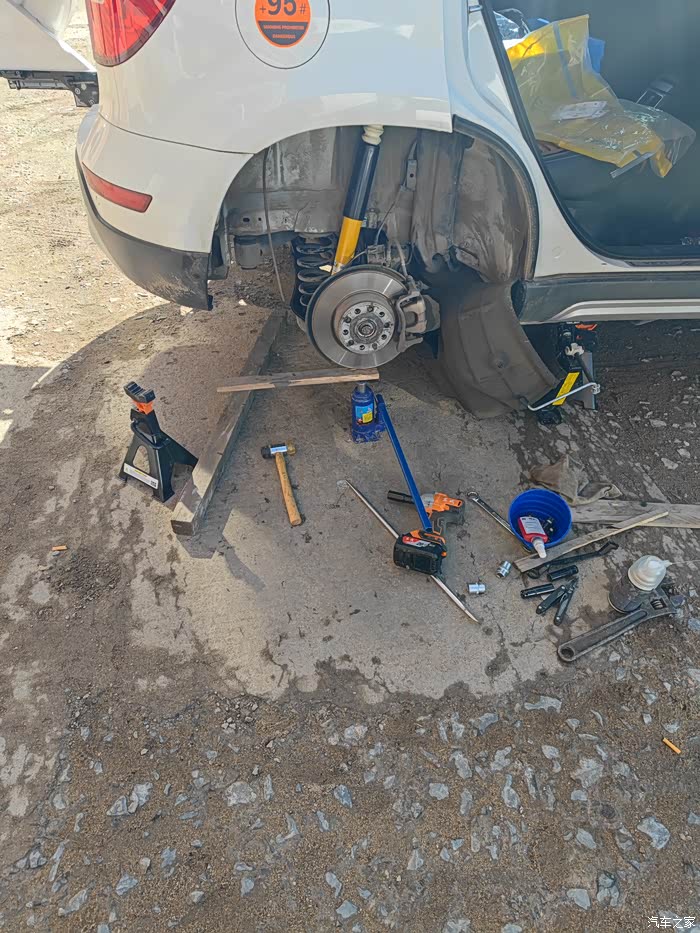 安装工程概况:2025.06.19下班后更换左后减震器一个人搓了约5小时,23.30上床。2025.06.21早4-7点更换右后减震器用了约3小时。2025.06.21下午15点最后一个工具材料到位,15点50-21点30安装右前减震器用时约6个小时。2025.06.22上午6点-中午12点左前减震器上车用时约6小时、最终安装完毕时下午16点;原因:原减震器自喷漆留在底座上导致新减震器未卡到位-后来行驶一段路在一拐弯处“当一声”到位。