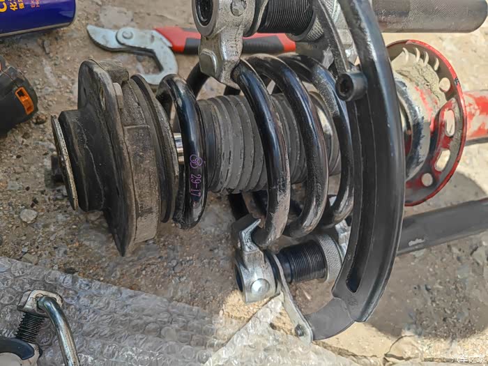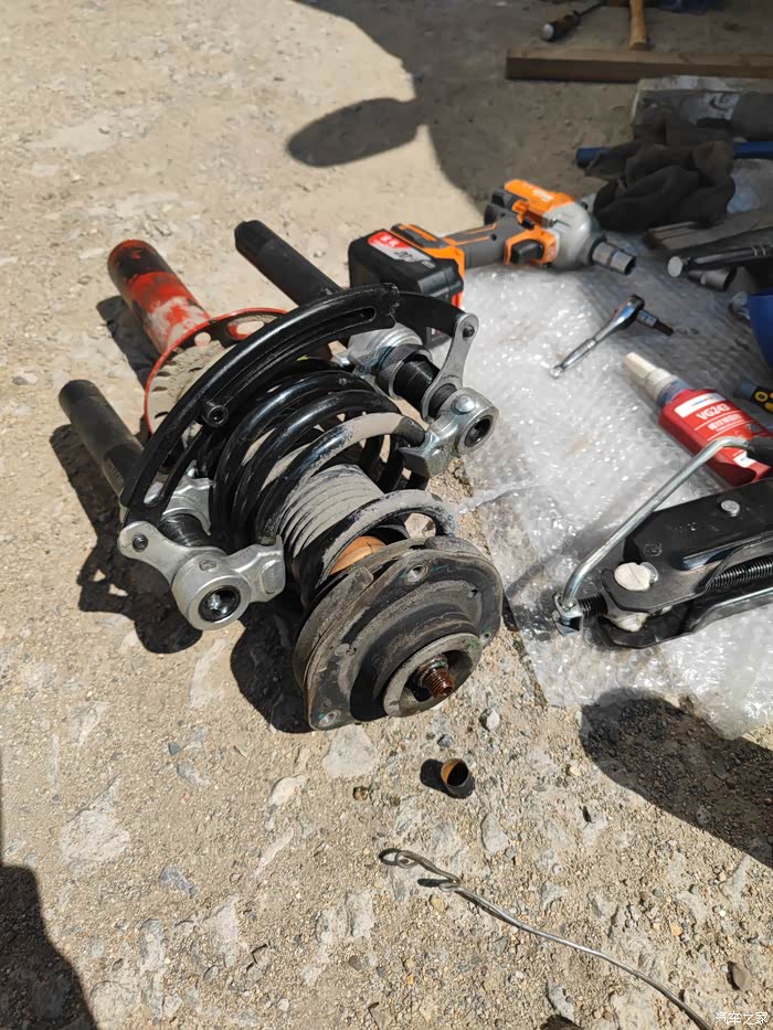右后减震器拆弹簧-本来想偷懒结果还是没搞明白。