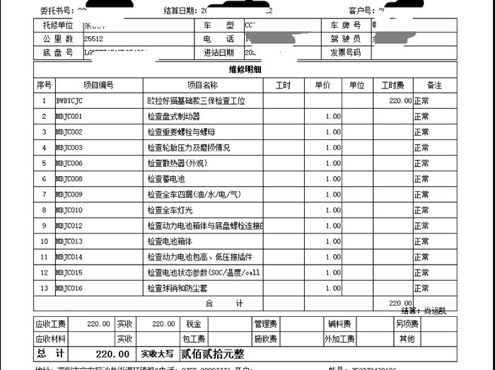 这次保养的费用是220元,好猫保养费是随城市变化的,这是深圳价格,小县城会更便宜一些,空调滤芯额外付了43元,总费用270元不到,咱就说电车养车还是非常经济实惠的。