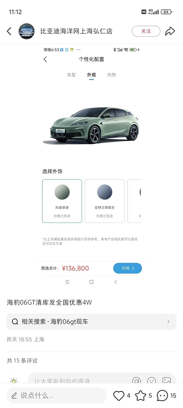 今天咨询海豹06gt,现金直接优惠1万元,大家一起去投诉。