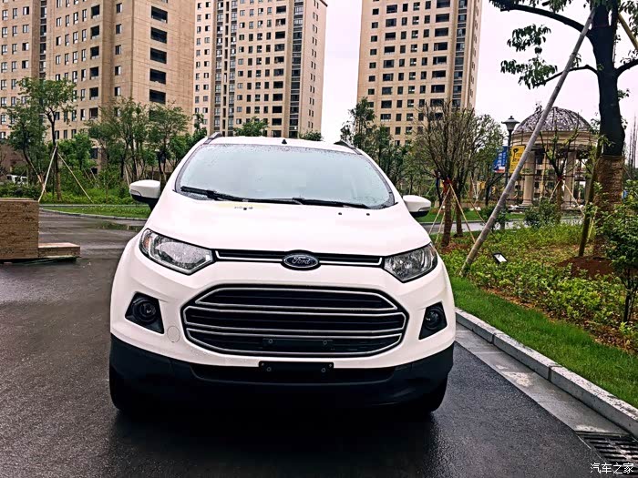然后开始看车,日系车不安全,内饰逊色了点,对外观也不感冒,还是小日本的品牌,所以第一个pass!别跟我说谁家里没有日货,对日货我是能抵制坚决抵制的!当然也会有车友说雷克萨斯,英菲尼迪啥啥的多好,对不起,我买不起,我能买的起的日本车都是一个德行...一开始我就一定要买个SUV,地盘距离地面高,不怕磕到马路不好的地方,价格又不想太高,不用买的太好,反正以后肯定是要换的。然后我就混在各种车的论坛里看,再去4s店看看,大众的途观L和别克的昂克拉,我都对比过了,车子都大同小异。最后看的是翼搏,外观漂亮,伶俐小巧,在上自己有试驾,感觉很顺手。福特的销售人员,和我同龄,他细心地讲解,每句话都说到我的心里去了,最后和家里人商量就选它了!我的第一辆车——翼搏!刚刚提回来不久,上照片!