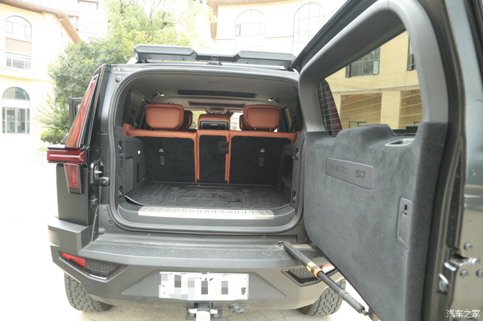 虽说猛士917 是带大梁的车,后排舒适性确实比不上同价位的城市 SUV,座椅有点直,填充物也相对偏硬一点。但它的优点在装载能力上,那真是没话说。方方正正的车尾设计,让后备箱容积达到 1137L,把后排座椅放倒后,我那套露营的全套家伙事儿塞进去轻轻松松。