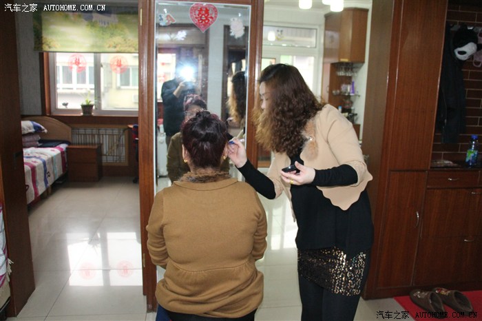 初一早上我老婆给我老妈在化妆。然后出门拜年。