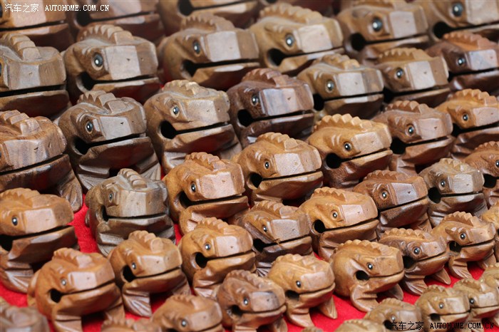 回民街里青蛙摆件。有个木头棒划青蛙背面的齿轮形状。能发出青蛙的叫声。