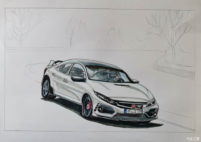 提起本田思域,那是一代人心目中的“神车”。去年9月,全新一代思域上市了。十一代思域一改十代思域的“杀马特”风格,走起了都市时尚风路线,新的造型时尚靓丽,老少皆宜,进一步增强了产品力。目前,全新思域有三厢版,思域的性能版就是思域Type-R,曾创下纽北前驱车最速的记录,据了解全新思域Type-R会在今年(2022年)被东风本田引入,让我们试目以待吧。此次,咱们就用手绘老款Type-R(2018款)的方式来迎接新款Type-R的上市吧。
