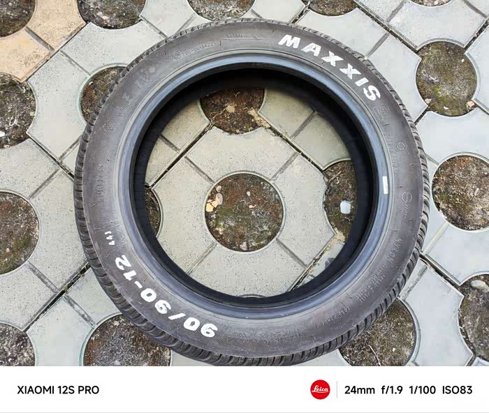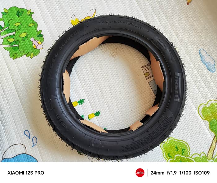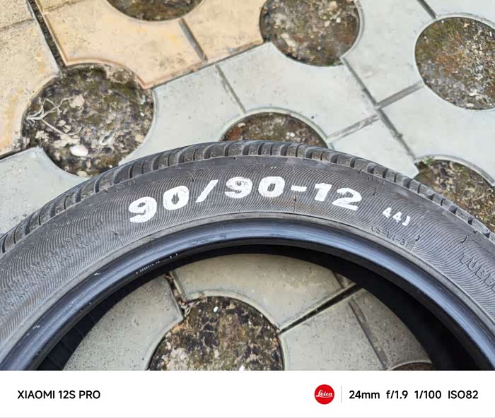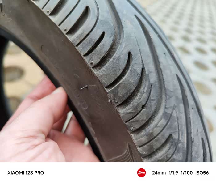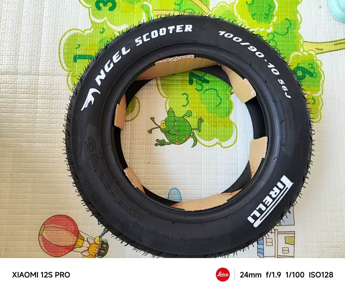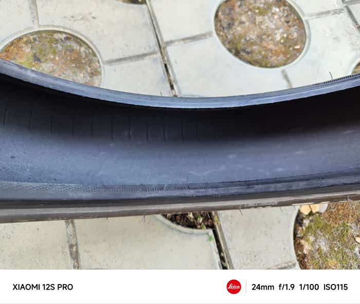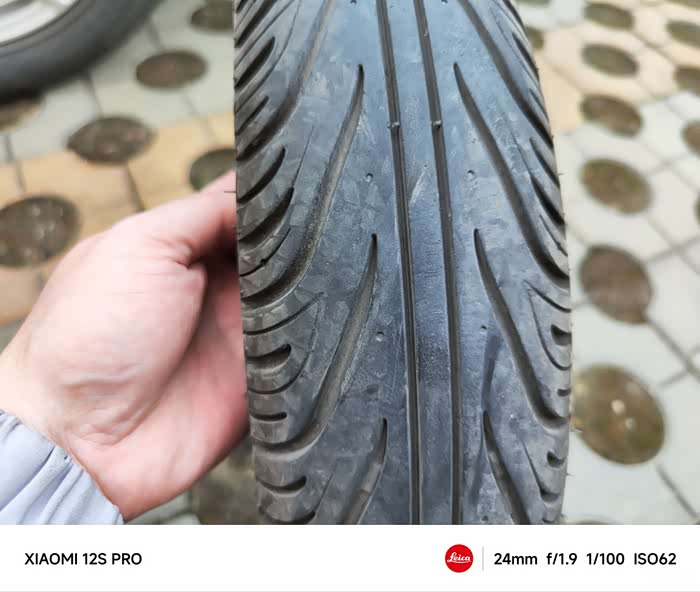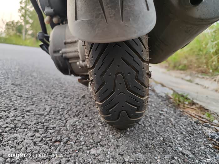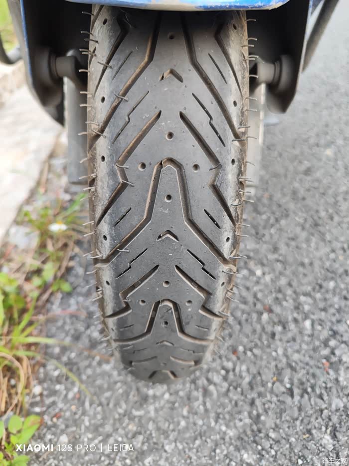 胎面花纹不对,前轮应该用直纹方便排水和转向,后轮才是斜纹防滑耐磨