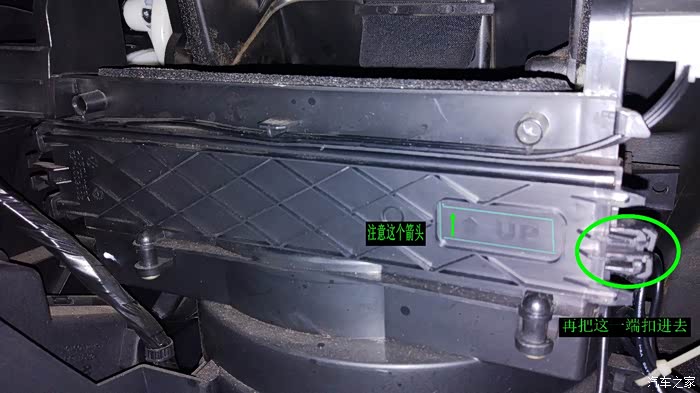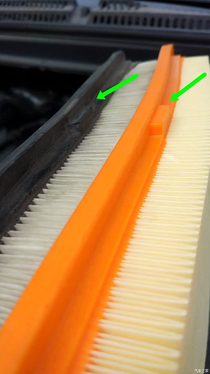 (3)取出滤芯,装入新的滤芯,注意凸起的地方对应空气盒的凹陷位置。