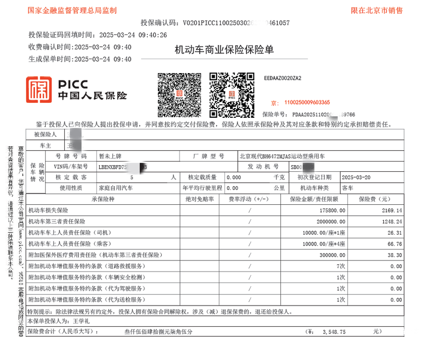 购车时间:2025年4月,北京