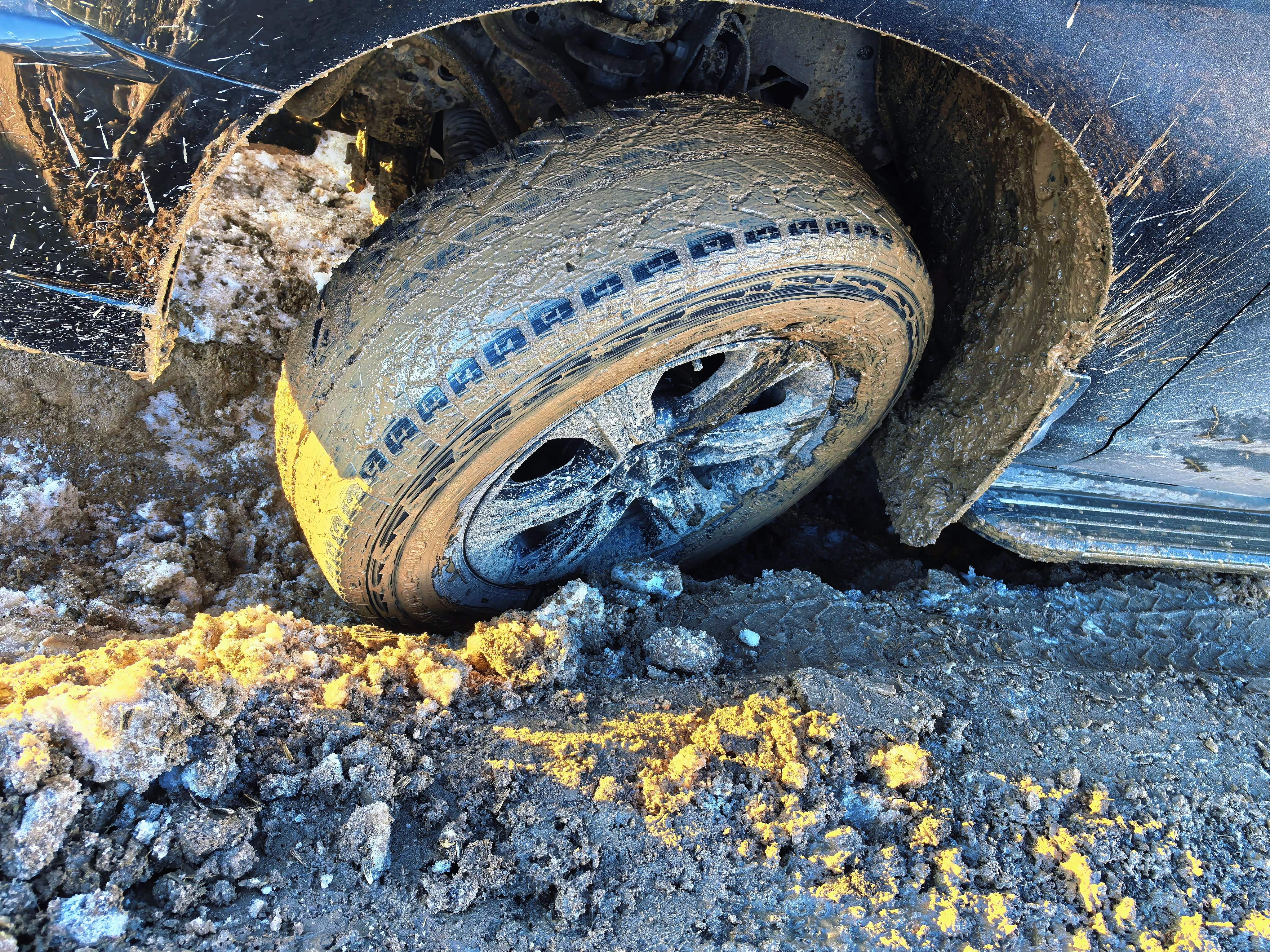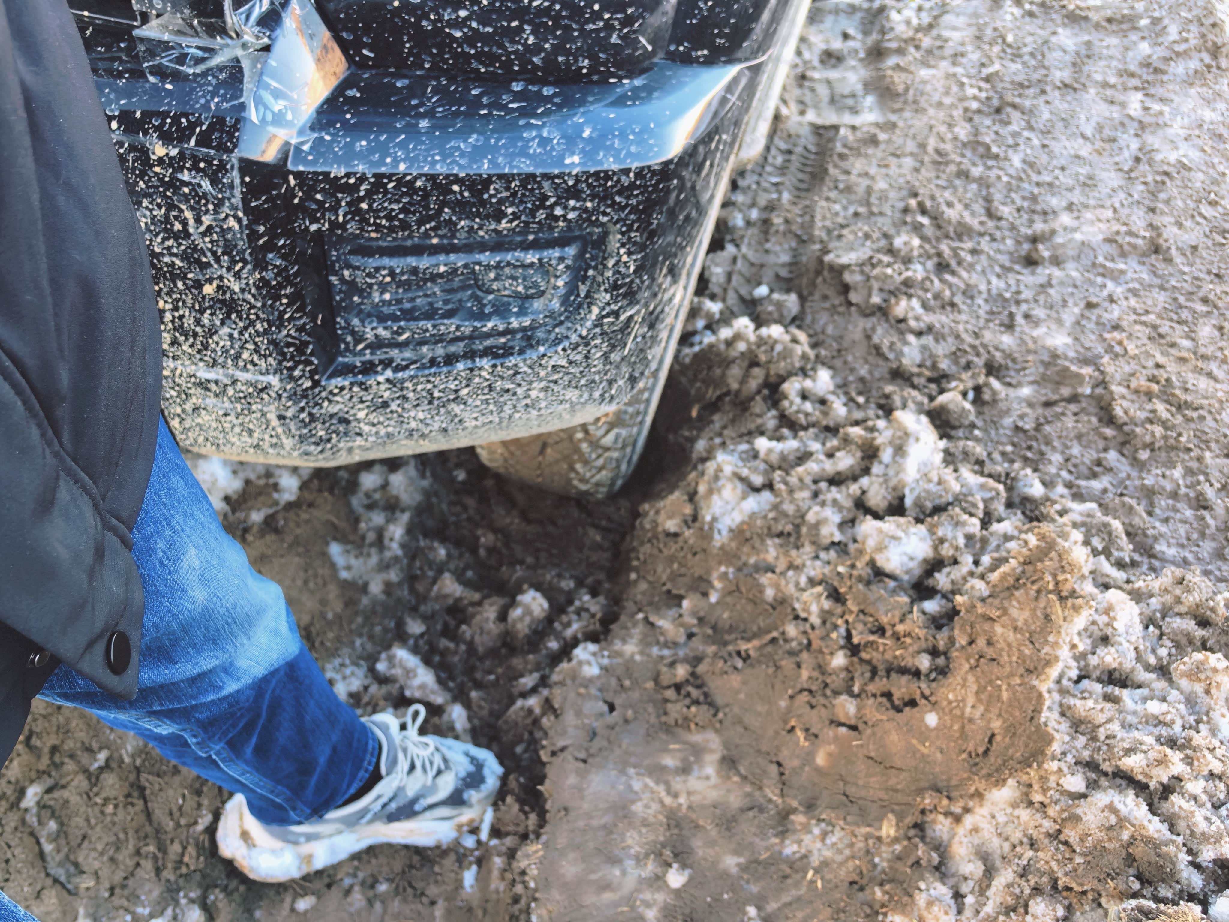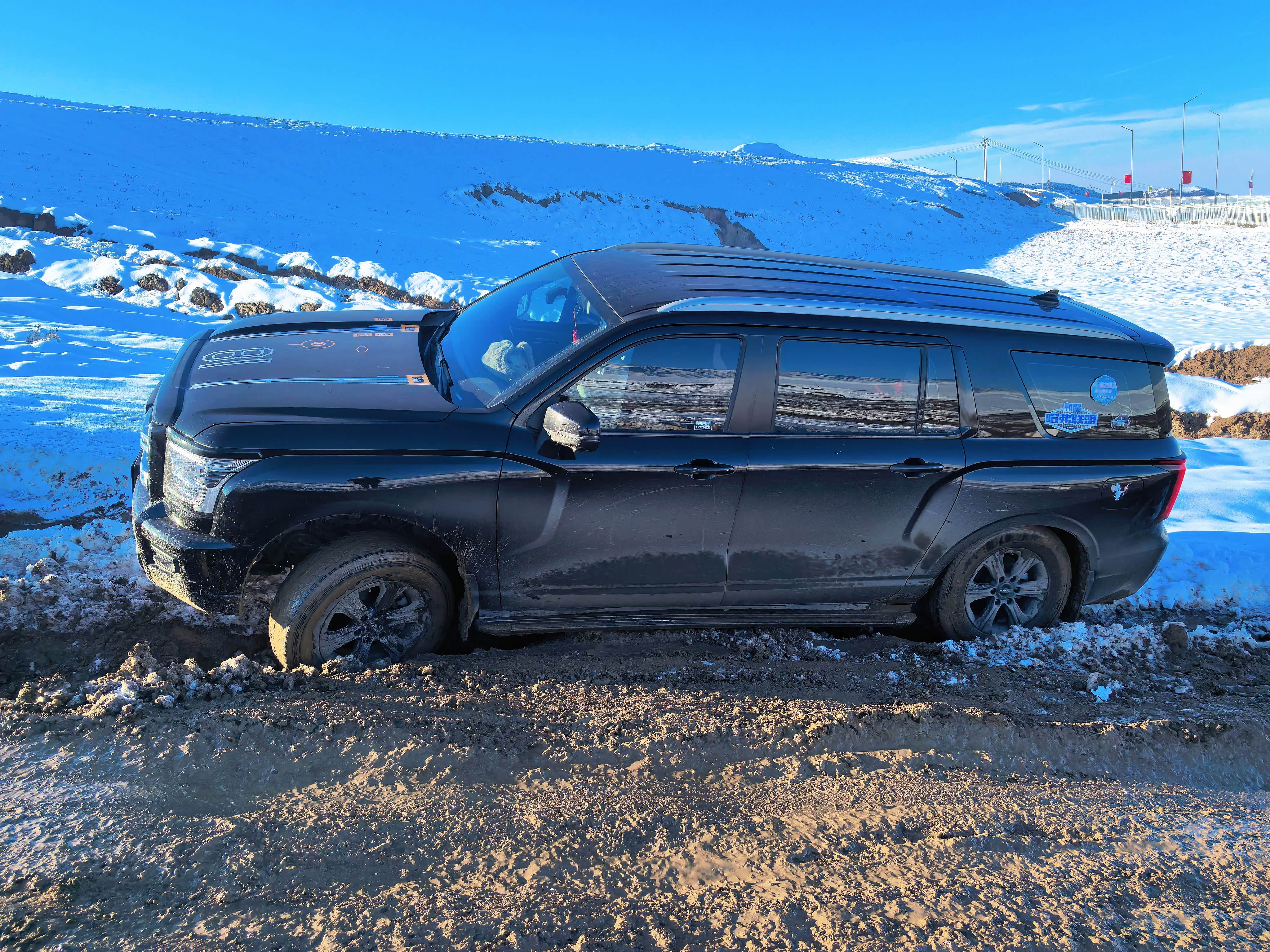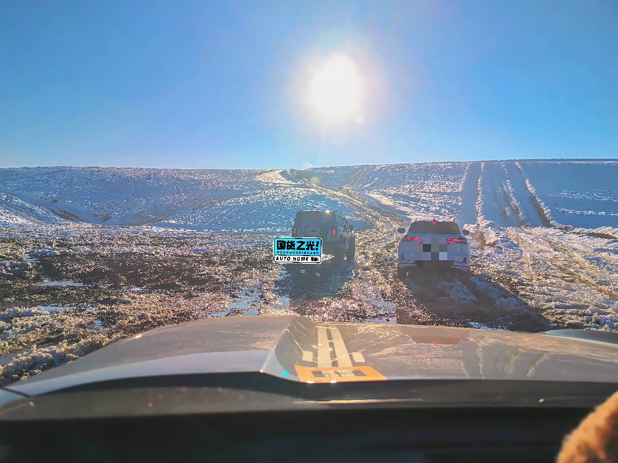 我还用的AT胎,虽然没换雪地胎,但心想问题不大。结果几次冲刺都滑了下来,因为没有拔ABS,刹车踩死就会失去控制,所以R挡,间歇刹车,最后一次倒车时,哐当——后轮掉进半米深的沟里,高4低4各种挠,最终成功底盘“担”住了,动弹不得,这不尴尬了,300上去了,帕杰罗劲畅上去了,后面一辆四驱CRV也上去了,论轮胎的重要性,这下丢人丢大发了,好吧我承认,上不来大队就是我。