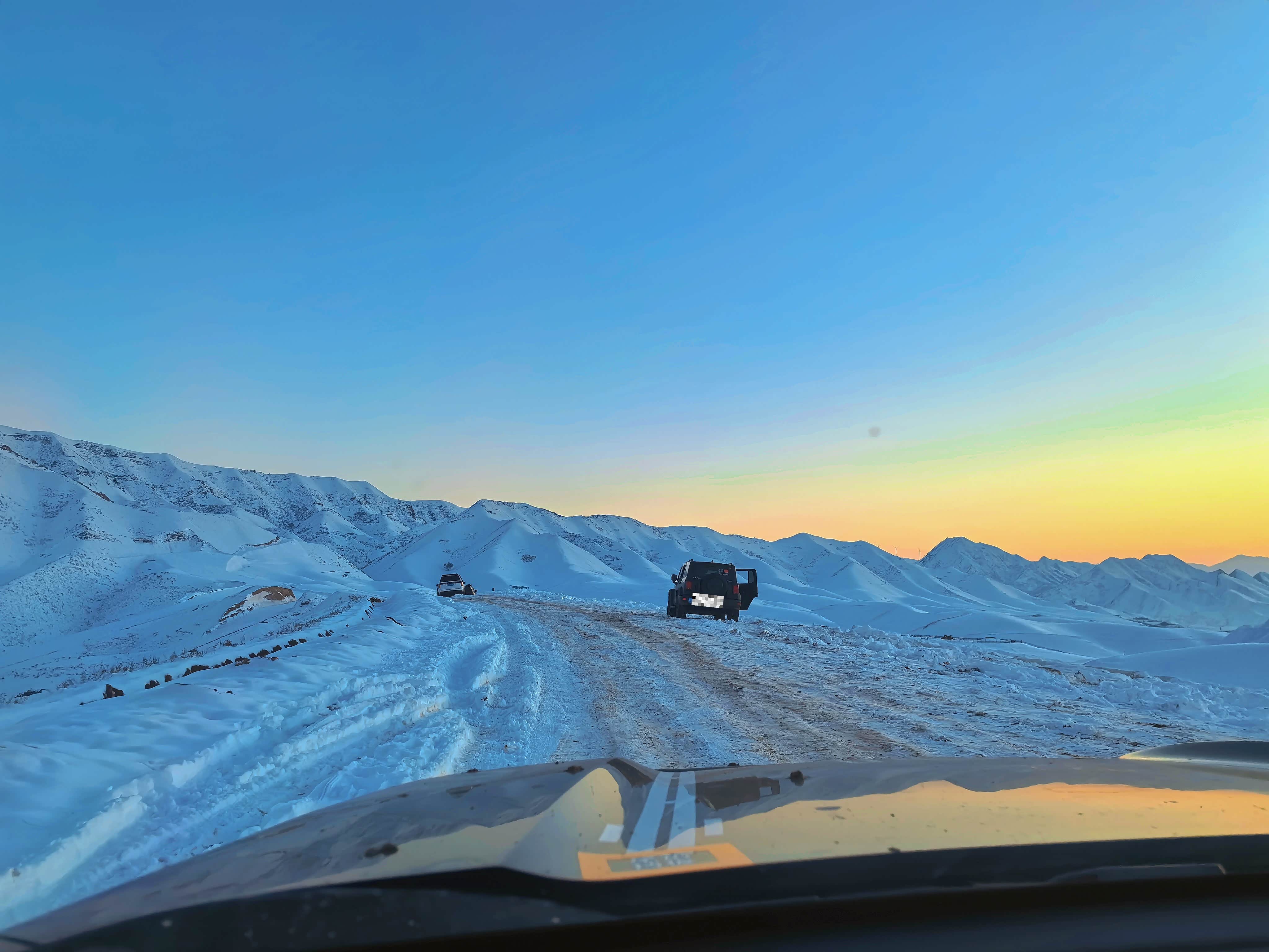 上微信大队里呼叫救援,车友排队要来看热闹搞节目,第一队40分钟后到。我家大哥着急了,有点害怕,我说怕是啥,玩一会,索性放平座椅,大哥玩手机刷抖音,看旁边雪地里的训鹰的小伙子溜鹰。