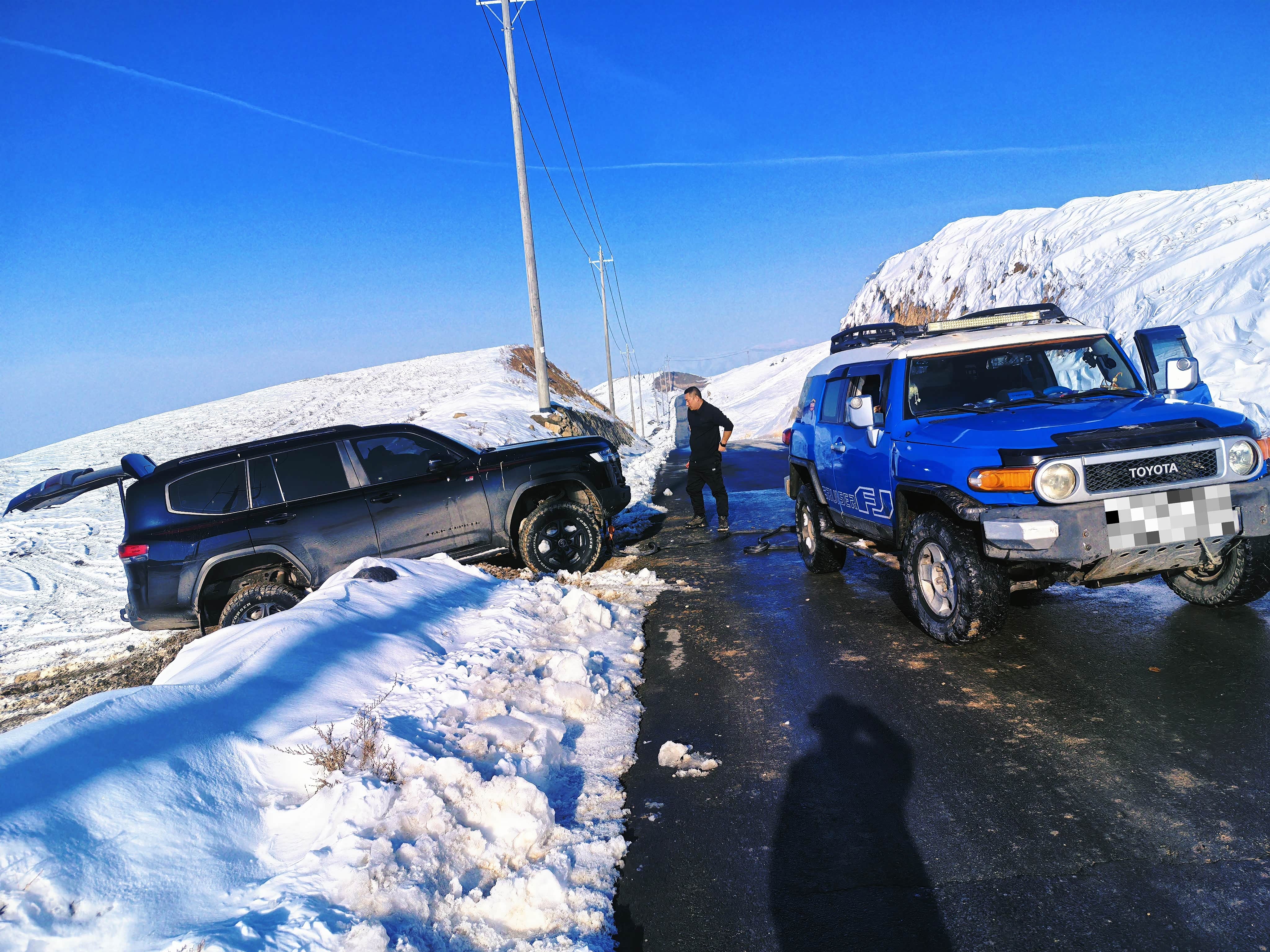 脑海里已经上演了孤胆英雄拖完被困车辆潇洒离开的画面。结果呢?火急火燎半小时赶到现场,就看见一辆LC200直勾勾的担住了,问题不大,一个FJ酷路泽大哥正在利索地挂绳子。