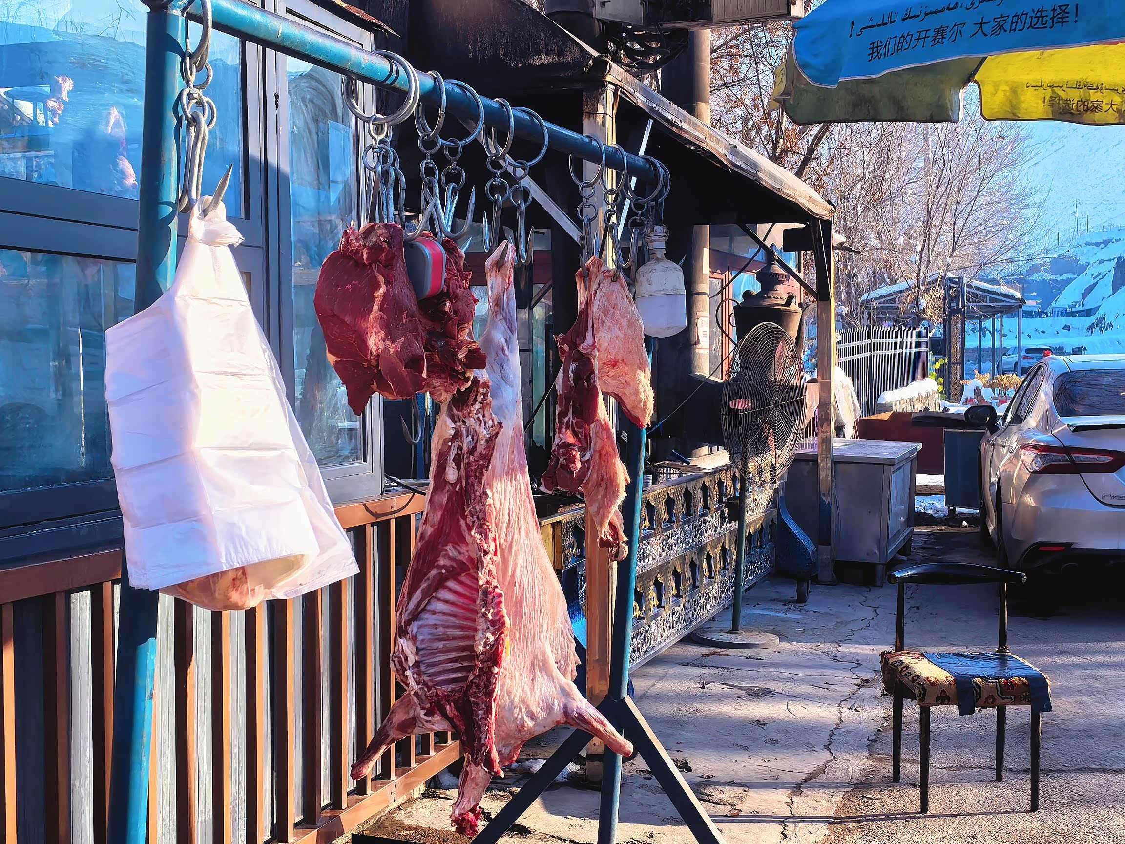 维吾尔族兄弟养的小羊羔,眼神清澈,胖乎乎的,可爱得紧。这么可爱,羊肉一定很好吃吧?念头一起就刹不住车,必须尝尝鲜。
