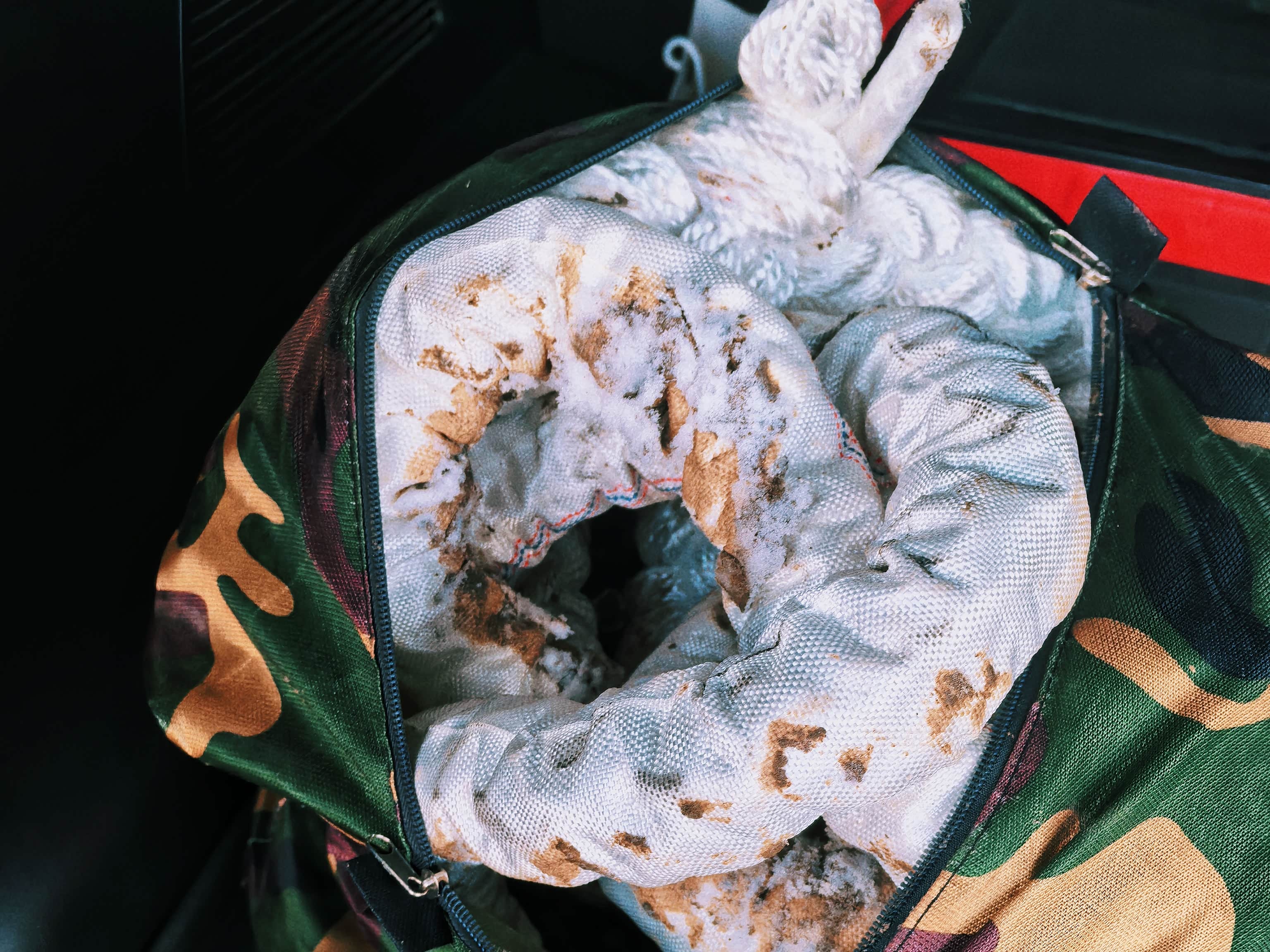 战损一个踏板,底盘护板估计又要敲敲打打,回家的路上,去洗车。老板看我这一车泥,底盘估计还有十几公斤土,以要下班为由婉拒。悻悻而归,先把半只小羊剁了分类打包塞进冰箱,然后站在浴室里,对着那根沾满泥巴的绳子叹气。