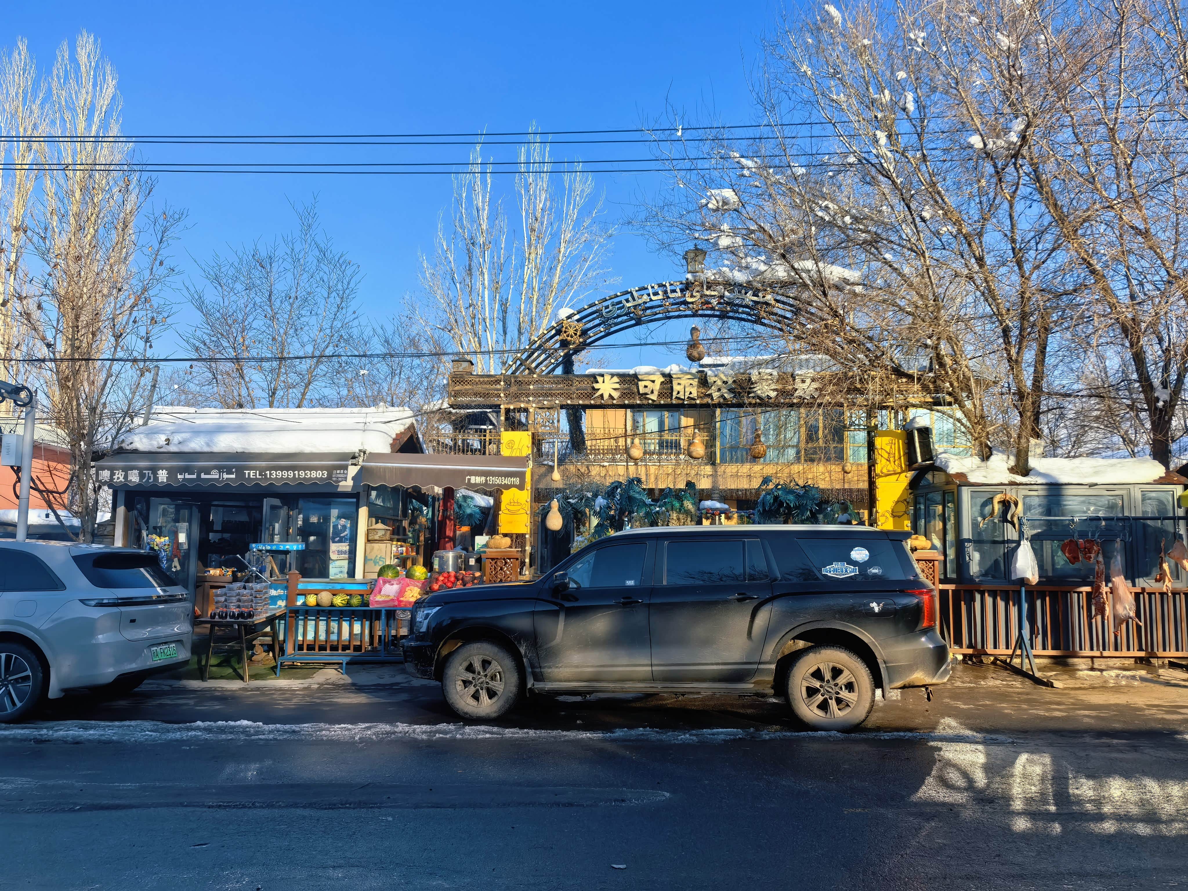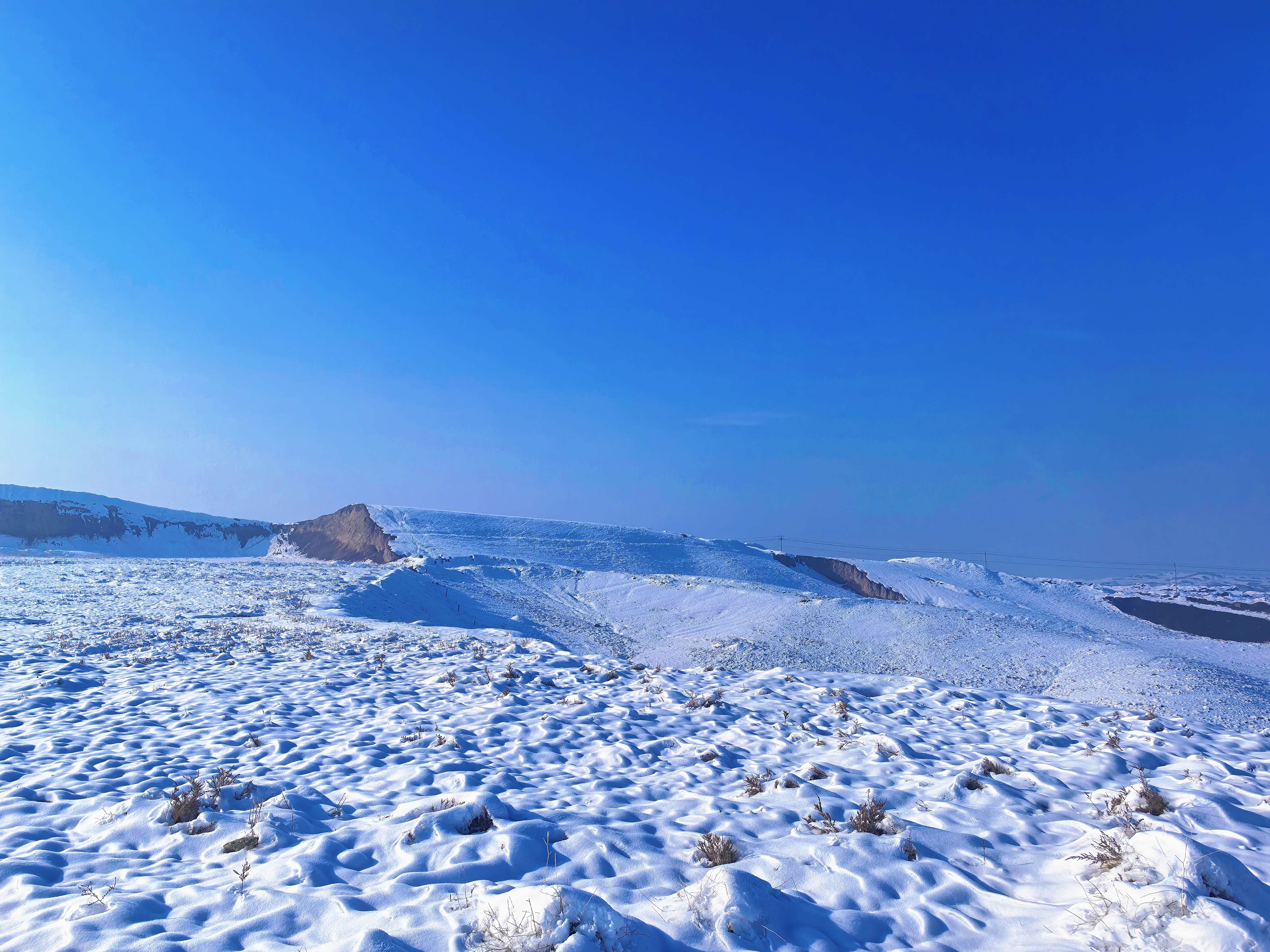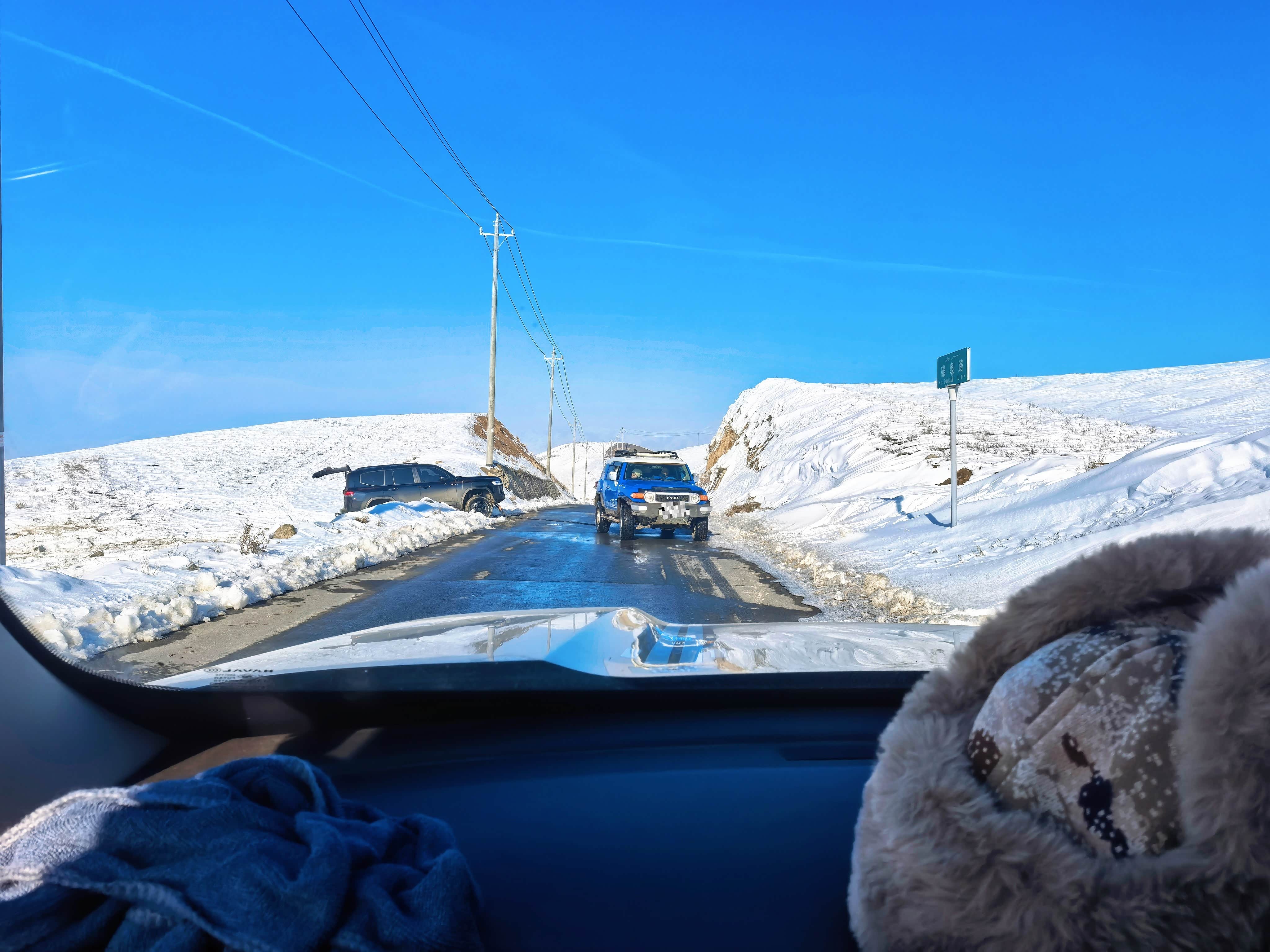 继续往里走,雪更深,天更蓝。白茫茫的山野像巨大的奶油蛋糕,我们的车是上面唯一移动的糖粒。