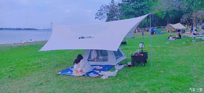 下午太阳有点晒了,就拿出前段时间商城搞活动,我抢购的牧高笛防晒天幕,两个人搭配五分钟就可以搭起天幕,遮阳效果非常棒,坐在天幕下面基本晒不到太阳。