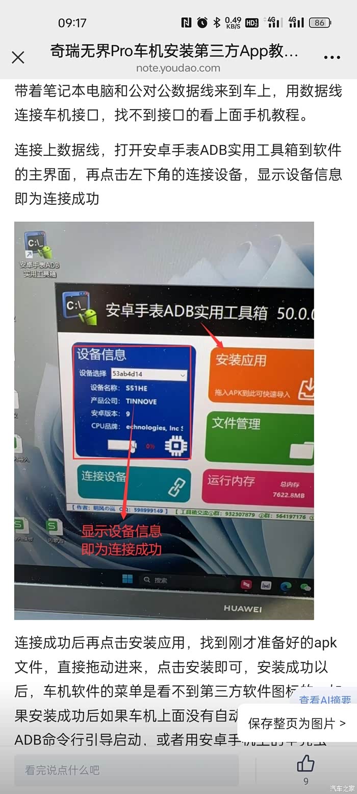 分享其他车友的安装方法。我是用的电脑安装方法,因为车机上不显示第三方 app, 最后要引导启动 app 后就可以了。代码 :adb shell am start -n 软件名/.MainActivity 软件名为 com 开头的这个