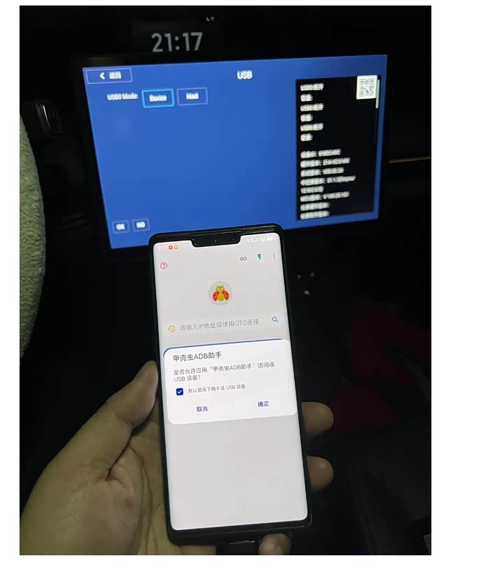手机安装甲壳虫 ADB 助手,和要安装的软件包。插上线,扶手箱后面插口