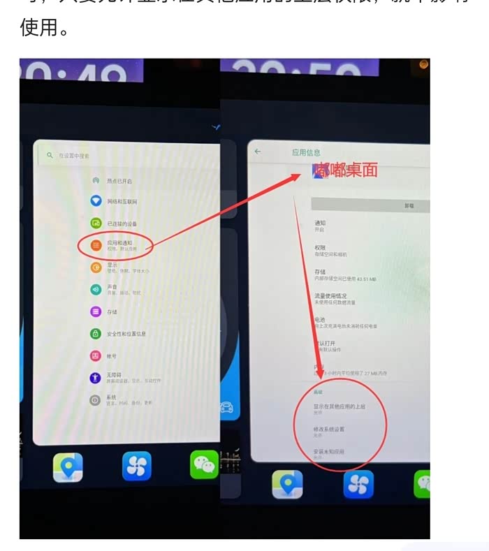 因为电脑安装软件后,车机里面不显示安装的软件,需要在软件管理的 ADB 命令里面去输入启动软件的命令,这样车机上软件就启动了,最好要安装一个三方桌面,启动这个桌面,就可以看见所有软件。并且设置小圆点随时要进入三方桌面。
