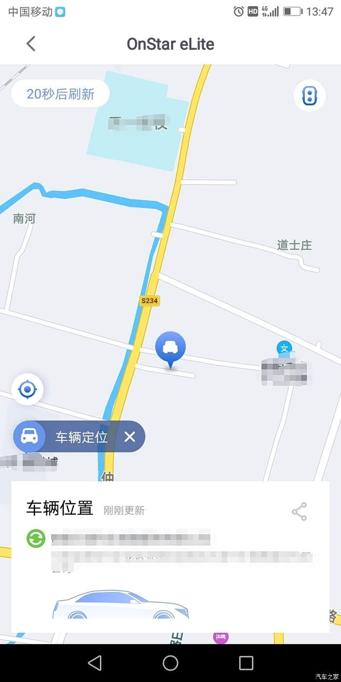 然后车辆所在位置地址就出来了,假如朋友借走也可以在手机上随时查看车辆所在位置,挺方便的。