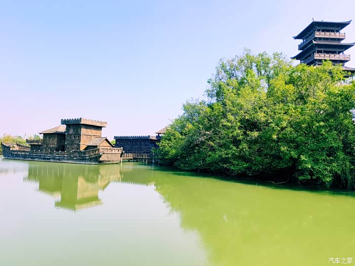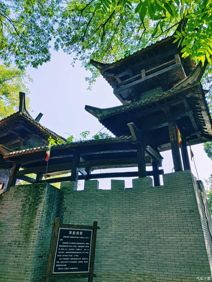 水塘对岸的草船借箭城楼里你也可以引弓亲身体验一把草船借箭。