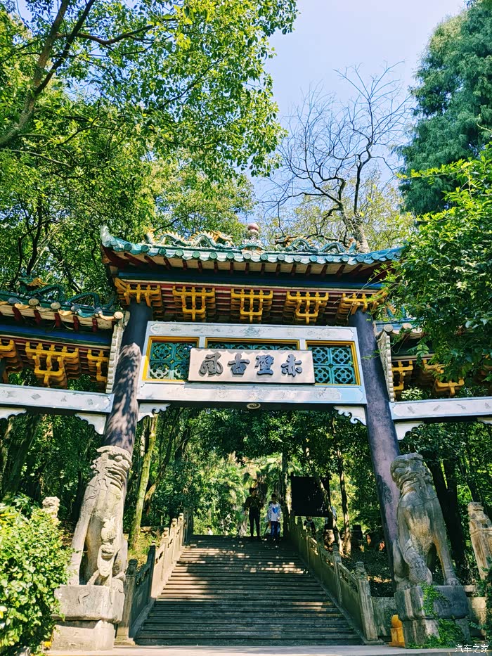 台阶下有一道古色古香的牌坊,上书赤壁古风。