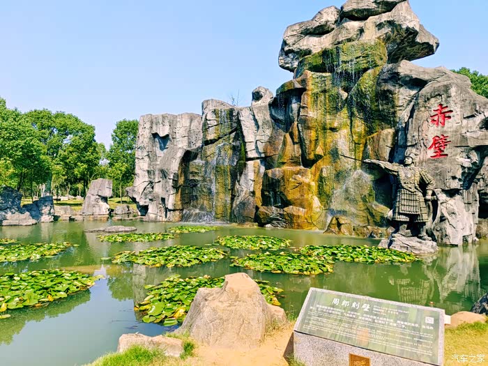 子敬塘边,诸葛亮和鲁肃的雕像再现了草船借箭的智慧!