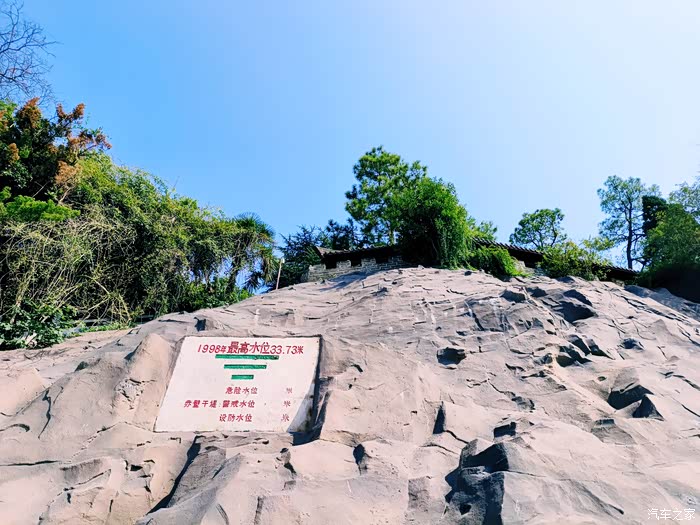 崖壁上赫然镌刻着1998年大洪水的最高水位,水位一经对比,就能遥想当年的洪峰有多肆虐!