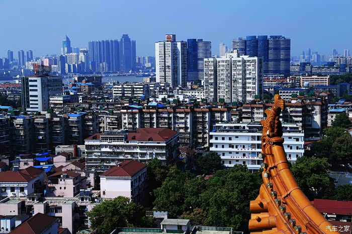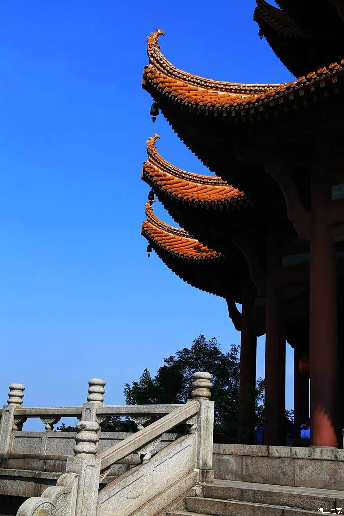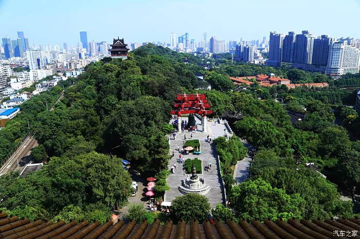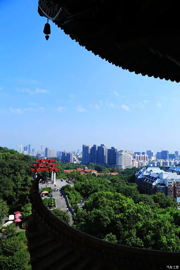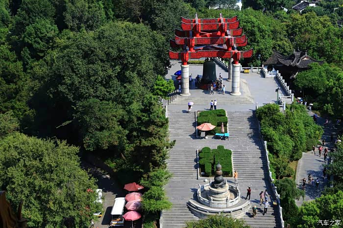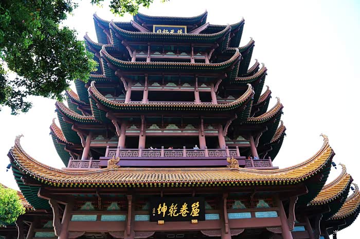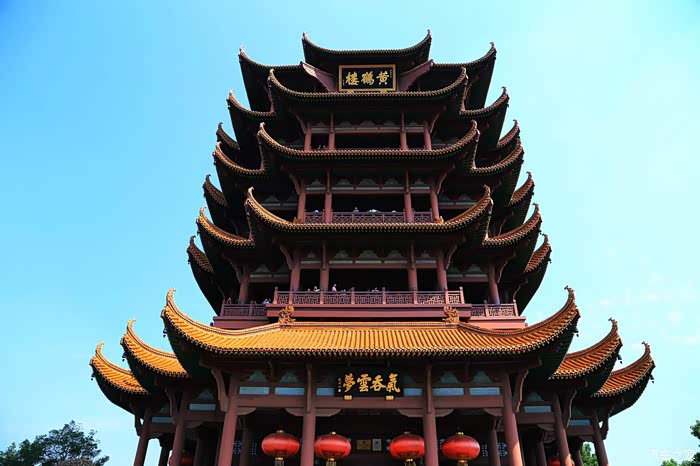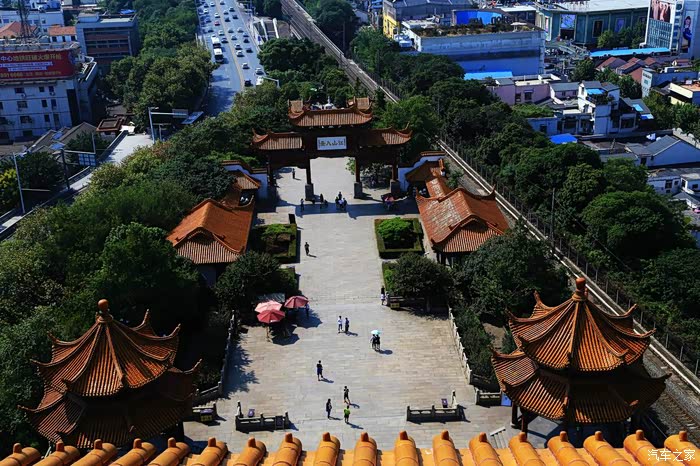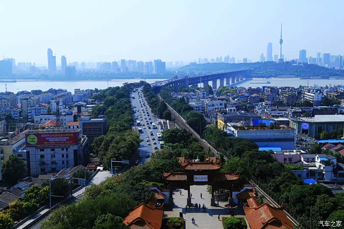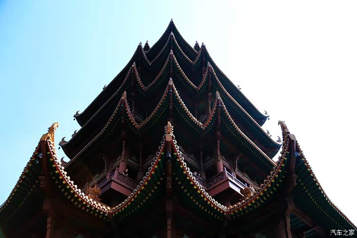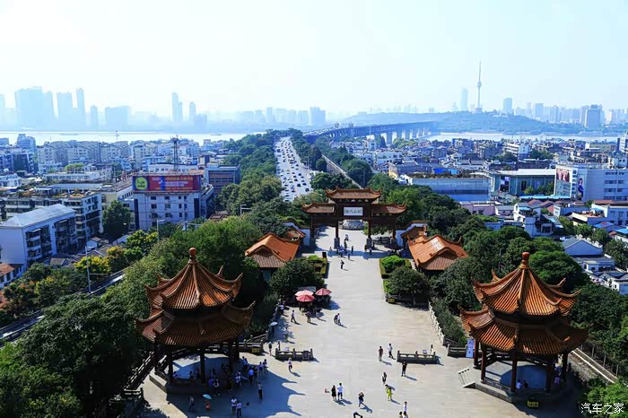 黄鹤楼位于湖北省武汉市长江南岸的武昌蛇山之巅,为国家5A级旅游景区,享有“天下江山第一楼“、”天下绝景“之称。黄鹤楼是武汉市标志性建筑,与晴川阁、古琴台并称“武汉三大名胜”。该建筑也与湖南岳阳楼、江西南昌滕王阁并称为“江南三大名楼”。黄鹤楼始建于三国时代吴黄武二年(公元223年)。唐代诗人崔颢在此题下《黄鹤楼》一诗,李白在此写下《黄鹤楼送孟浩然之广陵》,历代文人墨客在此留下了许多千古绝唱,使得黄鹤楼自古以来闻名遐迩。黄鹤楼坐落在海拔61.7米的蛇山顶,京广铁路的列车从楼下呼啸而过。楼高5层,总高度51.4米,建筑面积3219平方米。黄鹤楼内部由72根圆柱支撑,外部有60个翘角向外伸展,屋面用10多万块黄色琉璃瓦覆盖构建而成。黄鹤楼楼外铸铜黄鹤造型、胜像宝塔、牌坊、轩廊、亭阁等一批辅助建筑,将主楼烘托得更加壮丽。主楼周围还建有白云阁、象宝塔、碑廊、山门等建筑。整个建筑具有独特的民族风格,散发出中国传统文化的精神、气质、神韵。它与蛇山脚下的武汉长江大桥交相辉映;登楼远眺,武汉三镇的风光尽收眼底。今年女儿高考被湖北大学录取,虽然有些不理想,但是能去九省通衢的华中重镇武汉去读书,也还是能凑活吧!自网上查询到被湖北大学录取后,就计划着自驾路线(压根就没想着坐飞机与火车去),这不,一路上经过西安、十堰、武当山、神农架、秭归屈原故里、宜昌两坝一峡,最后到了目的地武汉。因为湖北大学一年级是在新洲区阳逻校区,距离武昌主校区大约40多公里,所以先去阳逻校区报名后,再来武昌。当时打算坐公交,一看倒车费事,索性就开车进武汉市区啦(毕竟咱曾经自驾过北京市区,哈哈),结果在武汉长江大桥上中枪了,因为大桥实行的单双号通行,咱是双号,在单日通行啦,扣6分、罚款200元。其实,外地人来武汉,除了看东湖风景区,再就是看黄鹤楼与武汉长江大桥啦!我们也不例外。
